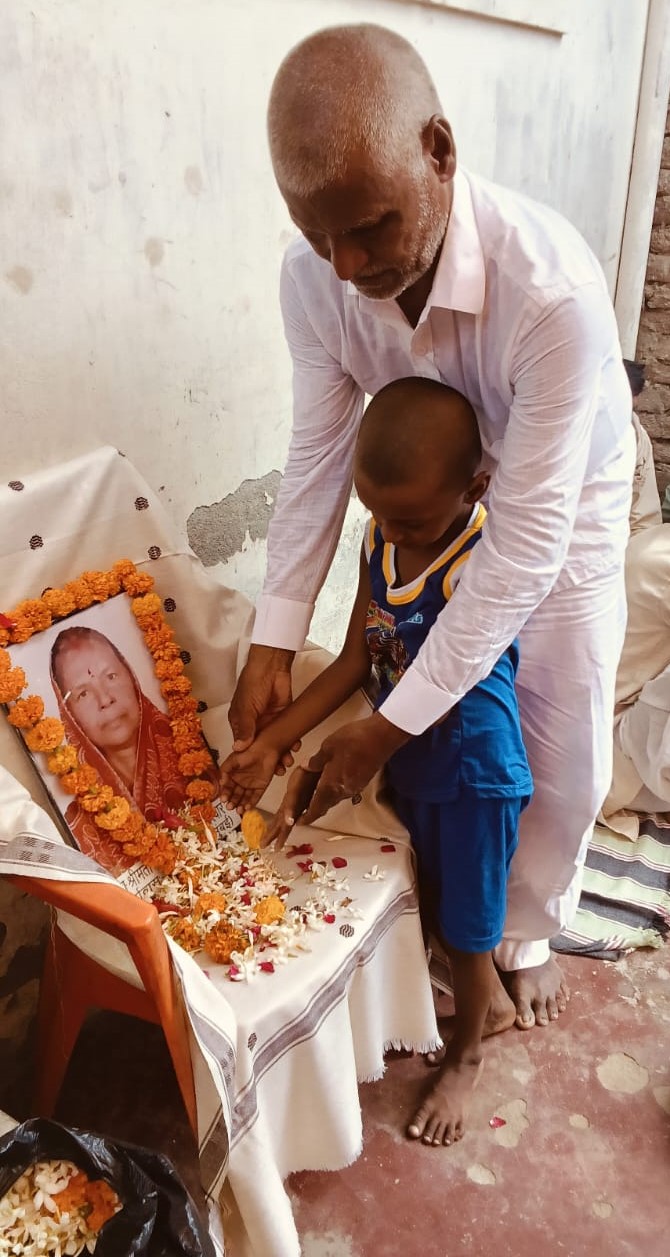 वरिष्ठ पत्रकार कपिलदेव खरवार की धर्मपत्नी सुभाषपति खरवार के आकस्मिक निधन पर कपिल कला केंद्र की तरफ से उनके पैतृक निवास स्थान जिला कुशीनगर के बिहार खुर्द समउर बाजार में ब्रह्मभोज पर भजन संध्या का आयोजन किया गया।
