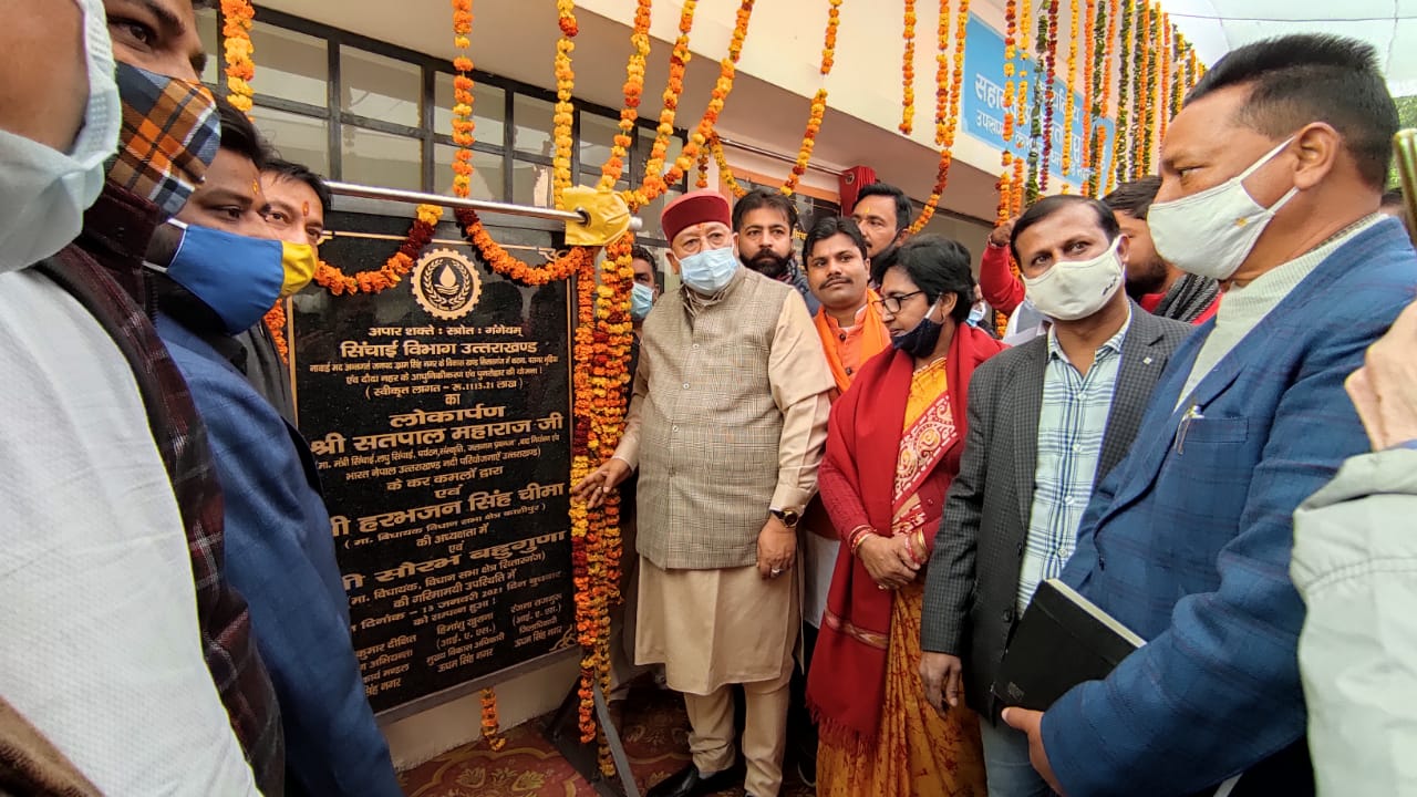 पर्यटन एवं सिंचाई मंत्री श्री सतपाल महाराज ने जनपद उधम सिंह नगर स्थित काशीपुर के विकासखंड परिसर में लघु सिंचाई विभाग के अंतर्गत उपखंड कार्यालय काशीपुर के 24 लाख 83 हजार रुपए की लागत से निर्मित आवासीय भवन एवं 10 करोड़ 60 लाख की लागत की नाबार्ड वित्त पोषित योजनाओं के निर्माण कार्यों के साथ-साथ नाबार्ड के अंतर्गत सिंचाई विभाग की जनपद उधमसिंह नगर के सितारगंज विकासखंड की कटना, बसगर भूडिया एवं दौंदा नेहरों के आधुनिकरण की 11 करोड. 13 लाख 21 हजार की योजनाओं का भी लोकार्पण किया किया। काशीपुर विकासखंड परिसर में आयोजित लोकार्पण समारोह में बोलते हुए सिंचाई मंत्री नेे कहा कि लघु सिंचाई विभाग द्वारा निर्मित आरटीजन कूपों और सिंचाई विभाग द्वारा विकासखंड सितारगंज की कटना, बसगर, भुडिया एवं दौंदा नहरों के आधुनिकरण के बाद किसानों को खेतों की सिंचाई के लिए जहां एक और पर्याप्त मात्रा में पानी मिल पाएगा वही उन्हें पानी की किल्लत से भी निजात मिल पाएगी। उन्होने अधिकारियों को चेतावनी देते हुए कहा कि काम करने का तरीका जीवन में आना चाहिए। कार्यकर्ताओं पार्टी की नींव होता है, अधिकारियों को पार्टी कार्यकर्ताओं के फोन जरूर उठाने चाहिएं।