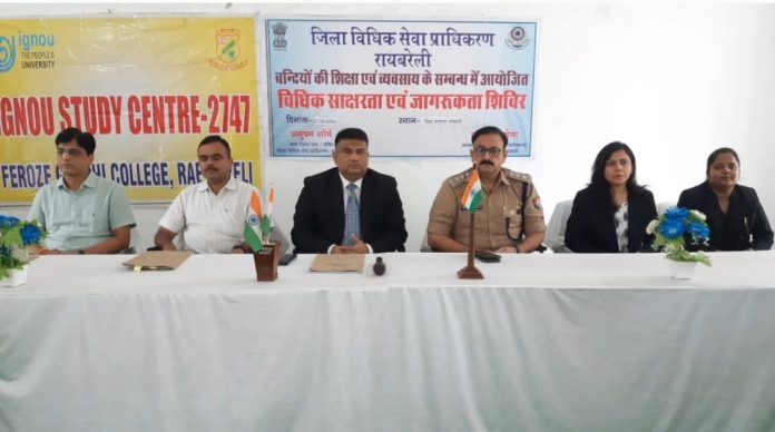 राजन प्रजापति/रायबरेली। उप्र राज्य विधिक सेवा प्राधिकरण, लखनऊ तथा माननीय जनपद न्यायाधीश/अध्यक्ष जिला विधिक सेवा प्राधिकरण, रायबरेली तरुण सक्सेना के दिशा-निर्देशन में मंगलवार को जिला कारागार, रायबरेली में निरुद्ध बन्दियों की शिक्षा एवं व्यवसाय के सम्बन्ध में विधिक साक्षरता एवं जागरुकता शिविर का आयोजन जिला कारागार में किया गया। उक्त शिविर में बंदियों की शिक्षा एवं व्यवसाय विषय पर विस्तृत चर्चा की गयी। सचिव जिला विधिक सेवा प्राधिकरण अनुपम शौर्य के द्वारा इन्दिरा गाँधी ओपन विश्वविद्यालय के माध्यम से संचालित होने वाली शिक्षा एवं व्यवसाय के बारे में बन्दियों को जागरुक किया गया तथा सर्वप्रथम सन् 1835 में लार्ड मैकाले द्वारा शिक्षा की नीति के बारे में विस्तृत जानकारी दी गयी।