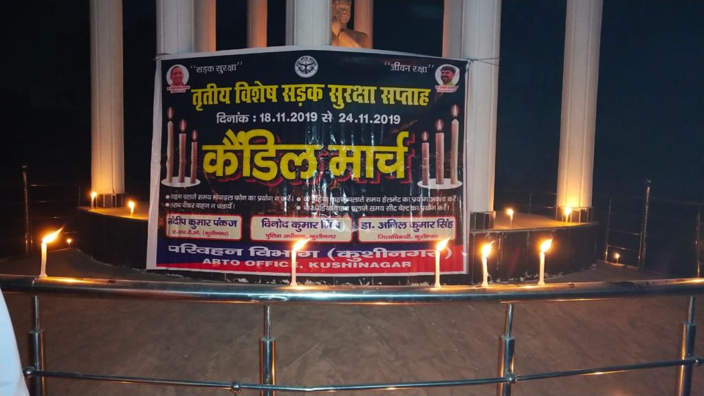 सड़क सुरक्षा सप्ताह के समापन पर शाम को कैंडल मार्च का आयोजन