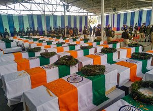 शहीद जवानों के पार्थिव शरीर को लेकर सैन्य विमान दिल्ली पहुंचा