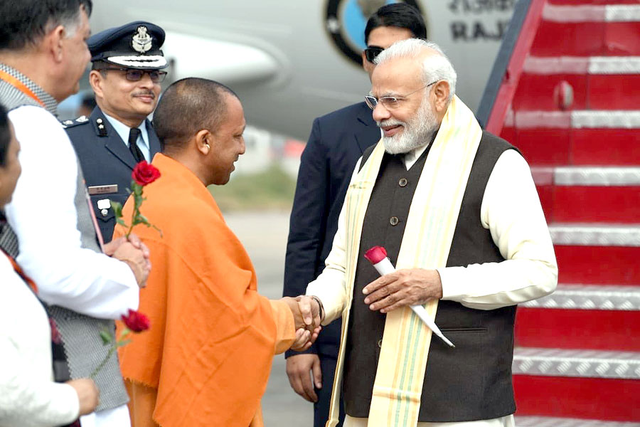 संवाददाता/लखनऊ। प्रधानमंत्री नरेन्द्र मोदी नेशनल गंगा काउंसिल की बैठक के लिए कानपुर पहुंचे हैं। उनके पहुंचने से पहले मुख्यमंत्री योगी ने उनका ट्वीट के माध्यम से स्वागत किया और एयरपोर्ट पर पीएम मोदी का पुष्पगुच्छ देकर अभिनंदन किया|।