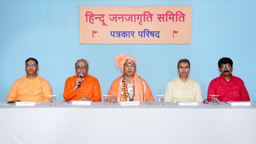 फोंडा, गोवा में आयोजित पत्रकार परिषद में वे बोल रहे थे । इस अवसर पर त्रिपुरा के ‘शांति काली आश्रम’ के पू. चित्तरंजन स्वामी महाराज, ‘गोमंतक मंदिर महासंघ’ के सचिव श्री. जयेश थळी, ‘हिन्दू जनजागृति समिति’ के राष्ट्रीय प्रवक्ता रमेश शिंदे एवं हरियाणा की ‘विवेकानंद कार्य समिति’ के अध्यक्ष नीरज अत्री उपस्थित थे ।
