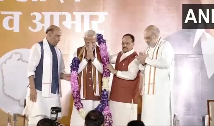 हरियाणा और जम्मू कश्मीर चुनाव के नतीजे आज सामने आ गए हैं। हरियाणा में भाजपा ने जबरदस्त तरीके से ऐतिहासिक जीत हासिल की है। वहीं जम्मू कश्मीर में कांग्रेस और नेशनल कांफ्रेंस गठबंधन को जीत मिली है। भाजपा 29 सीटों पर जीत हासिल करने में कामयाब रही है। चुनावी परिणामों को लेकर भाजपा में जबरदस्त उत्साह है। आज भाजपा कार्यालय में जबरदस्त जश्न रखा गया था जहां प्रधानमंत्री नरेंद्र मोदी ने कार्यकर्ताओं को संबोधित किया। अपने अंबोधन में मोदी ने कहा कि हम सबने सुना है कि ‘जहां दूध दही का खाना, वैसा है अपना हरियाणा।’ हरियाणा के लोगों ने फिर कमाल कर दिया है और कमल-कमल कर दिया है।