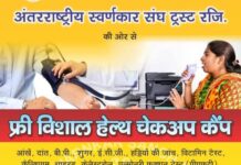 अंतर्राष्ट्रीय स्वर्णकार संघ की ओर से निःशुल्क चिकित्सा शिविर का आयोजन