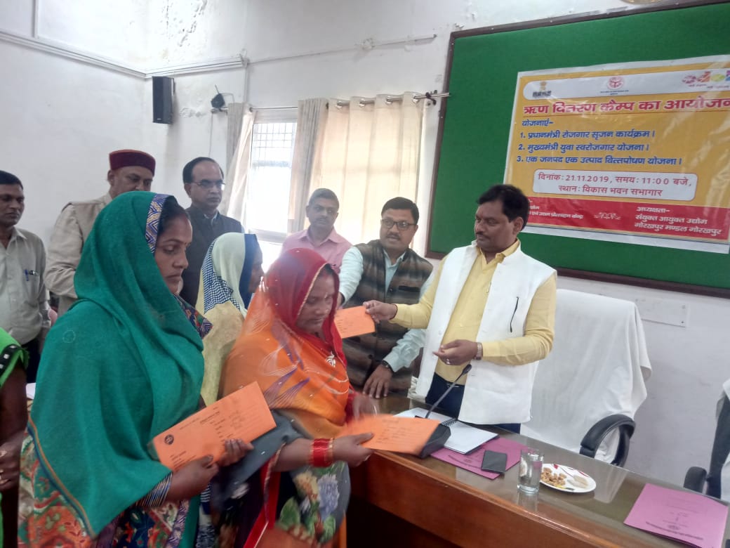 संवाददाता/कुशीनगर| जिलाधिकारी डॉ0 अनिल कुमार सिंह की अध्यक्षता में आज विकास भवन सभागार में प्रातः 11 बजे जिला उद्योग एवं उद्यम प्रोत्साहन केन्द्र, कुशीनगर की ओर से ऋण वितरण कैम्प का आयोजन किया गया, जिसमें ‘प्रधानमंत्री रोजगार सृजन कार्यक्रम’(पीएमईजीपी), ‘मुख्यमंत्री युवा स्वरोजगार सृजन योजना’ (एमवाईएसवाई) तथा ‘एक जनपद एक उत्पाद योजना’(ओडीओपी) के कुल 79 व्यक्तियों के कुल 696.50 लाख का ऋण वितरण किया, इसके अलावा मुद्रा योजना में 538 व्यक्तियों को 462.50 लाख का ऋण वितरण किया गया।
