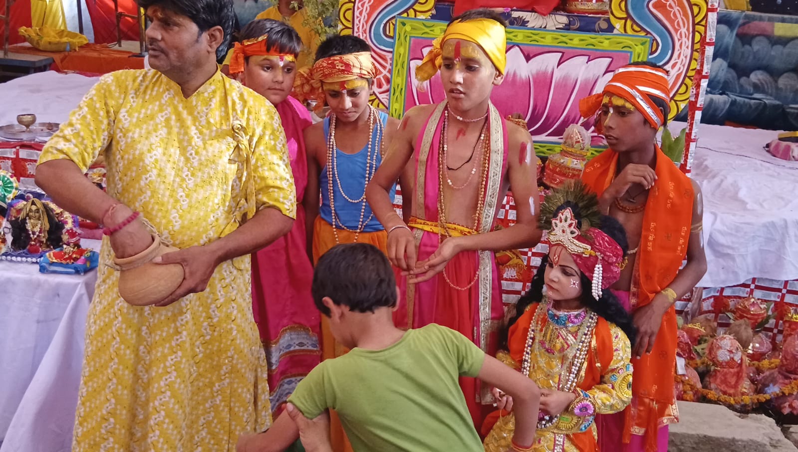टप्पल के ग्राम खण्डेहा में भोजू वाला मंदिर के प्रांगण में चल रहे श्रीमद्भगवत कथा महायज्ञ के पांचवे दिन पंडित श्री प्रेमपाल भारद्वाज जी ने कहा कि श्रीकृष्ण की बाल लीलाओं का आनंद लेने के लिए भगवान शिव भेष बदल कर बाल छवि का दर्शन किया। मन मोहनी सूरत के दर्शन के लिए तीनों लोकों के देवगण धराधाम पर आए और बाल छवि के दर्शन कर सबने अपना जीवन धन्य किया। ऐसे ही हमें भी भगवान के दर्शन करने के लिए निर्मल और विशाल ह्रदय बनाना पड़ेगा।