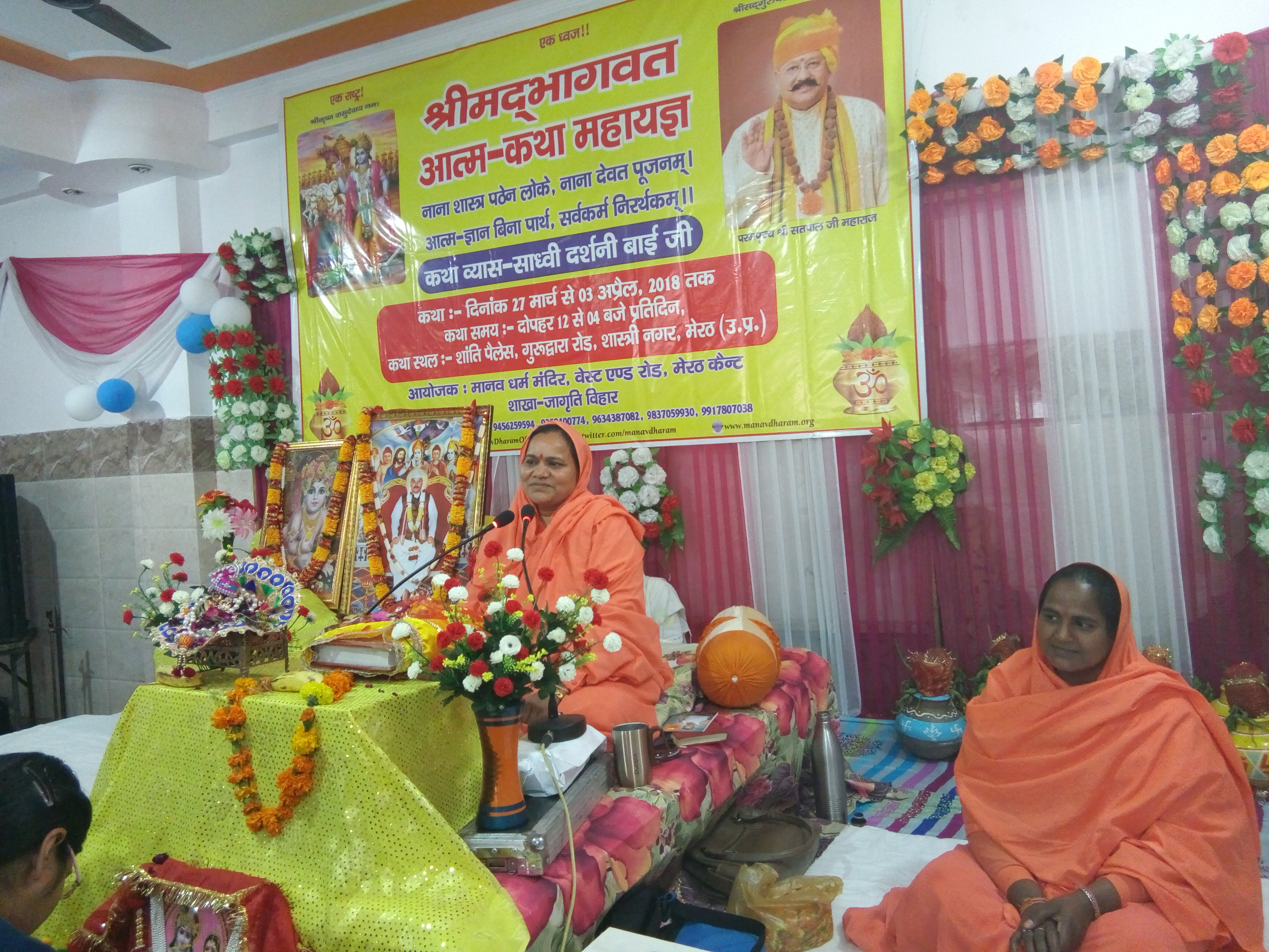 संवाददाता/मेरठ: सुप्रसिद्ध समाजसेवी श्री सतपाल जी महाराज की प्रेरणा से शांति पैलेस में चल रहे भागवत कथा के दुसरे दिन कथा व्यास साध्वी दर्शनी बाई जी ने भगवान के अवतार कथा के माध्यम से कहा कि भगवान का इस धराधाम पर अवतरण किसी विशेष उदेश्य से होता है, कोई न कोई विशेष कारणों से भगवान का मानव शरीर में आना होता है| धर्म की स्थापना और अधर्म पर अंकुश लगाने के लिए महापुरुषों का इस धराधाम पर आना होता है| भगवान ही स्वयं सतगुरु रूप में मानव का शरीर धारण करके आते है और भटके हुए मानव को अध्यात्म ज्ञान देकर उसे सत्य के मार्ग पर लगाते है| जिसपर चलकर मानव अपना कल्याण करता है| अर्थात भक्तों की रक्षा और असुरो का संहार करने के लिए भगवान ने अनेक रूप धारण करके इस धरती पर आये| आज भी हमे उस परमात्मा के पावन नाम को जाने के लिए समय के सच्चे सद्गुरु की पहचान करके उनके द्वारा दिए गये नाम-दान को जानकर भजन साधन करना होगा तभी हमारा कल्याण संभव है|
