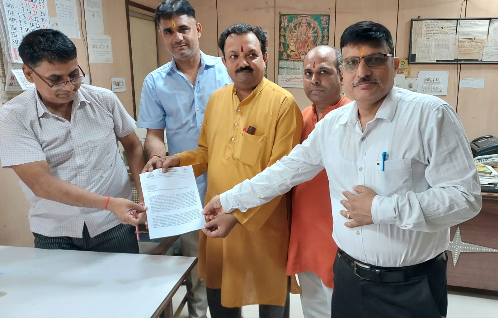 मथुरा में सिटी मेजिस्ट्रेट को ज्ञापन देते समय डॉक्टर भूपेश शर्मा, डॉक्टर पूनम शर्मा, पूनम किंगर व अन्य पांच धर्मप्रेमी उपस्थित थे।