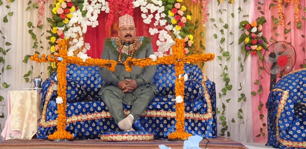 इसलिए कहा गया है प्रथम भक्ति संतन कर संगा। संतो के संगत से पहला भक्ति शुरू होता है। लेकिन आज लोगो के पास सत्संग के लिए टाइम नही है। जब आदमी को अटैक पड़ता है तब उसके पास टाइम मिल जाता है। दूध के अंदर माखन रमा हुआ है उसे बिना विधि के हम प्राप्त नही कर सकते। उसी तरह भगवान सर्वव्यापक है।चाहे कोई भगवान को माने या न माने स्वास हर कोई व्यक्ति ले रहा है और छोड़ रहा है। इसलिए कहा गया है कि निरंजन माला घट में फिरे दिन-रात, ऊपर आवत नीचे जावत स्वास स्वास चल जात और संसारी नर समझे नाही विरथा उमर विहाट। यह दिन रात निरंतर चलती ही उसे से हम सुमिरण कर सकते है। नेपाल में लोग सनातन धर्म को मानने वाले में है। जिसका आदि अंत नही है। शक्ति का जन्म नही होता और न ही नाश होता है।आत्मा अजर अमर और अविनाशी है।इसका कोई अस्त्र शस्त्र से नाश नही होता है।उसी को हमे जानना है। लोग कहते है कि आत्मा को नही जान सकते अगर ऐसा है तो आत्मा है ये कैसे जाना। उसे भगवान ने कैसे जाना।इसका मतलब हम उसे जान सकते है। कहता हूं कहे जाट हूँ कहु बजाए ढोल, स्वासा खाली जाट है तीनलोक का मोल, ऐसे महंगे मोल का एक स्वास जो जाए, चौदह लोक न पट तरे काहे घुल मिलाये। मृग नाभि कुंडल बसे, मृग ढूंढे बन माहे, ऐसे घट घट ब्रह्मा है दुनिया जानत नाहे। शांति बाहर नही अपने अंदर ही मिलेगी।