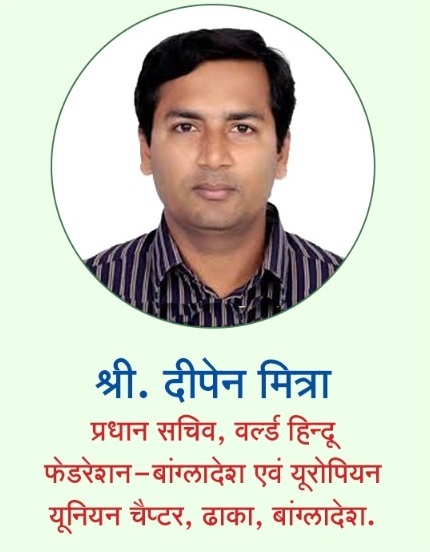 इस अवसर पर दीपेन मित्रा ने आगे कहा कि आज बांग्लादेश में 2.5 करोड़ हिंदू हैं; लेकिन हिंदू सुरक्षित नहीं हैं। हिंदुओं को किसी भी प्रकार का न्याय नहीं मिलता। बांग्लादेश सरकार, नेता या सेना की ओर से हिंदुओं को कोई सहायता नहीं मिलती। अन्य घटनाओं में मानवता पर अत्याचार होते हैं, तो संयुक्त राष्ट्र संघ, मानवाधिकार संगठन बहुत शोर मचाते हैं, लेकिन यहाँ बांग्लादेश के हिंदुओं पर अत्याचार हो रहे हैं, तब हिंदुओं के लिए कोई कुछ नहीं बोलता; क्योंकि उनके लिए हिंदू इंसान नहीं हैं। इसलिए हम भारतीय सरकार से बांग्लादेश के हिंदुओं को तुरंत बचाने की अपील करते हैं।