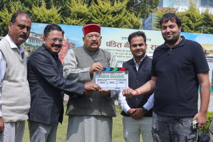 संवाददाता/देहरादून। प्रदेश के पर्यटन सिंचाई एवं संस्कृति मंत्री सतपाल महाराज ने आज स्वामी विवेकानंद जी के विचारों से ओतप्रोत राष्ट्रीय गीत “मेरे भारत” का शुभ मुहूर्त शॉट दिया।