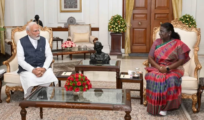 नई दिल्ली/प्रधानमंत्री नरेंद्र मोदी ने राष्ट्रपति भवन में राष्ट्रपति द्रौपदी मुर्मू से मुलाकात की और पाकिस्तान और पाकिस्तान के कब्जे वाले कश्मीर (पीओके) में आतंकवादी ठिकानों पर भारतीय सशस्त्र बलों द्वारा किए गए सटीक हमलों के बारे में जानकारी दी। इन सैन्य हवाई हमलों में नौ स्थानों को निशाना बनाया गया, जिनमें पाकिस्तान स्थित आतंकवादी संगठनों लश्कर-ए-तैयबा (एलईटी) और जैश-ए-मोहम्मद (जेईएम) के मुख्यालय और प्रशिक्षण केंद्र शामिल हैं, जहां से भारत के खिलाफ आतंकवादी हमलों की योजना बनाई गई थी और उन्हें अंजाम दिया गया था।