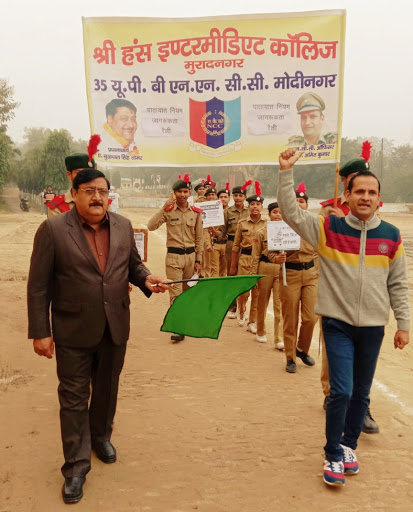 मुरादनगर । जिला गाजियाबाद के गंग नहर स्थित श्री हंस इंटर कॉलेज मुरादनगर में ट्रैफिक नियम जागरूकता अभियान के अंतर्गत एक रैली का आयोजन किया गया। विद्यालय के प्रधानाचार्य डॉ सुखपाल सिंह तोमर ने एनसीसी कैडेट को हरी झंडी दिखाकर रवाना किया। एनसीसी ऑफिसर डॉ अमित कुमार ने कुमार ने बताया कि डी०जी० एनसीसी नई दिल्ली के आदेश अनुसार व 35 बटालियन के कमान अधिकारी कर्नल आशीष पंडोत्रा के निर्देशानुसार ट्रैफिक नियम जागरूकता रैली का आयोजन किया गया।