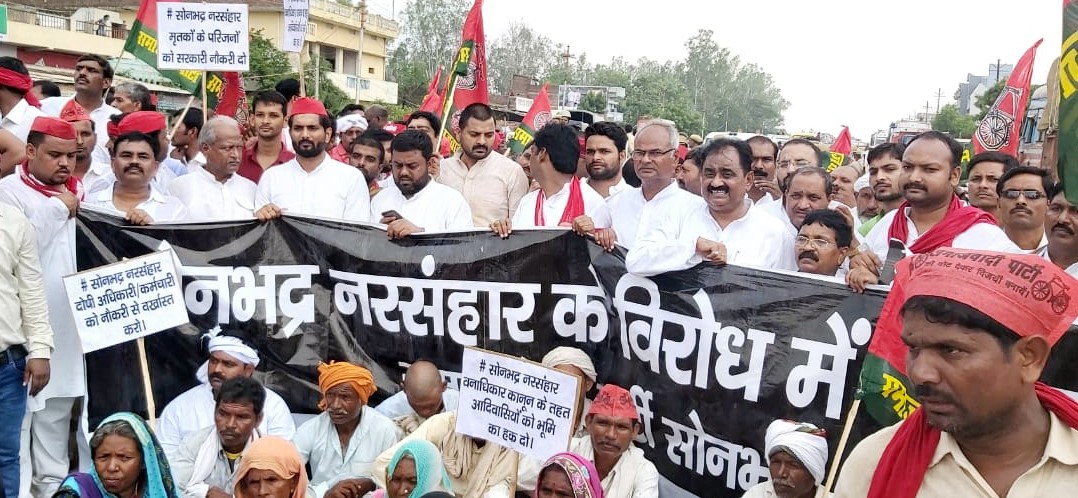 संवाददाता/लखनऊ। समाजवादी पार्टी के राष्ट्रीय अध्यक्ष एवं पूर्व मुख्यमंत्री अखिलेश यादव के निर्देश पर आज समाजवादी पार्टी के हजारों कार्यकर्ताओं ने सोनभद्र के लिए कूच किया, जिससे घबराये प्रशासन ने जगह-जगह नाकेबंदी कर कार्यकर्ताओं को रोका। प्रदेश अध्यक्ष नरेश उत्तम पटेल ने उम्भा गांव जाकर मृतकों के परिवारीजनों से भेंट की और उन्हें सांत्वना दी। कार्यकर्ताओं ने धरना देकर गत 17 जुलाई को सोनभद्र के उम्भा गांव में हुए नरसंहार के प्रति रोष और क्षोभ प्रकट किया। साथ ही स्थानीय पदाधिकारियों ने जिलाधिकारी सोनभद्र तथा वरिष्ठ पुलिस अधीक्षक को 8 सूत्री ज्ञापन सौंपकर प्रदेश में बिगड़ती कानून व्यवस्था की ओर ध्यान दिलाया तथा नरसंहार के दोषियों को सख्त सजा एवं पीड़ित आदिवासियों को सुरक्षा एवं खेती की जमीन पर कब्जा दिलाने आदि की मांग की।
