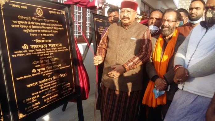 संवाददाता/देहरादून (विकास नगर)। प्रदेश के सिंचाई मंत्री सतपाल महाराज ने आज डाकपत्थर स्थित लघु सिंचाई उपखंड कार्यालय के भवन का लोकार्पण करने के साथ-साथ विकासखण्ड विकास नगर में क्षतिग्रस्त नहरों एवं गूलों के पुनर्निर्माण एवं कच्ची गूलों को पक्का करने सहित अनेक सिंचाई योजनाओं का शिलान्यास किया।