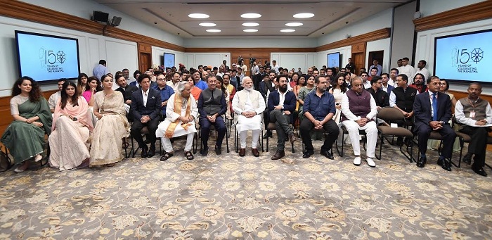 मोदी ने शनिवार को अभिनेताओं शाहरुख, आमिर खान और जैकी श्राॅफ, अभिनेत्रियां कंगना रनौत, सोनम कपूर और जैकलीन फर्नांडिस तथा निर्माता-निर्देशक राजकुमार हिरानी, इम्तियाज अली, बोनी कपूर और एकता कपूर समेत फिल्म उद्योग की जानी-मानी हस्तियों से मुलाकात की और उनसे गांधी और गांधीवाद पर फिल्म बनाने की अपील की। इस कार्यक्रम का आयोजन प्रधानमंत्री आवास 7, लोककल्याण मार्ग पर किया गया था। फिल्म उद्योग को आमंत्रित करने का मकसद महात्मा गांधी की 150वीं जयंती पर गांधी और गांधीवाद पर फिल्म बनाने के लिए प्रेरित करना था। बॉलीवुड की कई दिग्गज हस्तियां इस कार्यक्रम में शामिल हुईं और गांधी जी से जुड़े कार्यक्रमों को लेकर अपने सुझाव दिए।