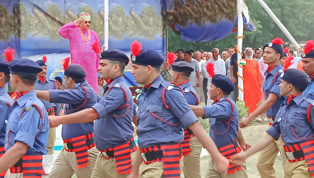 राष्ट्रीय पर्व 77वें स्वतंत्रता दिवस के अवसर पर श्री हंस नगर आश्रम में मुख्य अतिथि के रूप में उत्तराखंड सरकार में कैबिनेट मंत्री और आध्यात्मिक गुरु श्री सतपाल महाराज ने ध्वजारोहण किया। इस दौरान मानव सेवा दल के स्वयं सेवकों द्वारा पीटी परेड के साथ महाराज जी को सलामी दी गयी। पीटी परेड में दौरान श्री विभु जी और श्री सुयश जी के सुपुत्र श्रीयांस और अयांश की सद्भावना टोली ने भी सम्मिलित होकर सलामी दी। परेड में श्री महाराज जी के परिवार के सभी सदस्यों ने कार्यक्रम में उपस्थित होकर कार्यक्रम की शोभा बढ़ाई। ध्वजारोहण के समय उपस्थित सभी लोगों ने सम्मान पूर्वक राष्ट्रगान गाकर तिरंगे का शान बढ़ाया।