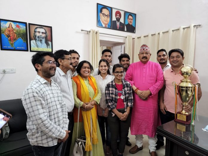 संवाददाता/देहरादून,1जून2022। भुवनेश्वर, उड़ीसा में आयोजित राष्ट्रीय जनजातीय नृत्य महोत्सव-2022 के आयोजन में उत्तराखंड को प्रथम पुरस्कार दिलवाने वाले जौनसारी सांस्कृतिक दल ने प्रदेश के पर्यटन एवं संस्कृति मंत्री सतपाल महाराज से भेंट कर उनका आभार व्यक्त किया है।