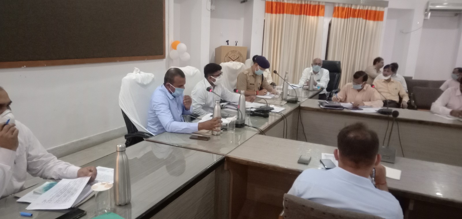 उन्होने कहा कि सभी अधिकारी एवं कर्मचारी ‘आरोग्य सेतु एप’ डाउनलोड करें और अन्य लोगो को भी प्रेरित करे, उन्होंने असंगठित क्षेत्रों में कामकारो को वेतन दिए जाने की समीक्षा करते हुए कहा कि किसी भी कर्मचारी/कामगार का वेतन न रोका जाये और यदि वेतन न मिलने की शिकायत प्राप्त होती है तो तत्काल सम्बधित के विरुद्ध कड़ी कार्रवाई की जाए। उन्होने अधिशासी अधिकारियो को निर्देशित किया नगर क्षेत्रो में साफ सफाई करते हुए भी छिडकाव आदि भी कराया जाए और कोई भी अधिकारी बिना जिलाधिकारी के अनुमति के मुख्यालय न छोड़े। इस अवसर पर जिलाधिकारी भुपेन्द्र एस चौधरी, एस0पी विनोद कुमार मिश्र, मुख्य विकास अधिकारी आनंद कुमार, सहित उप जिला मजिस्ट्रेट व अन्य सभी सम्बंधित अधिकारीगण उपस्थित रहे।