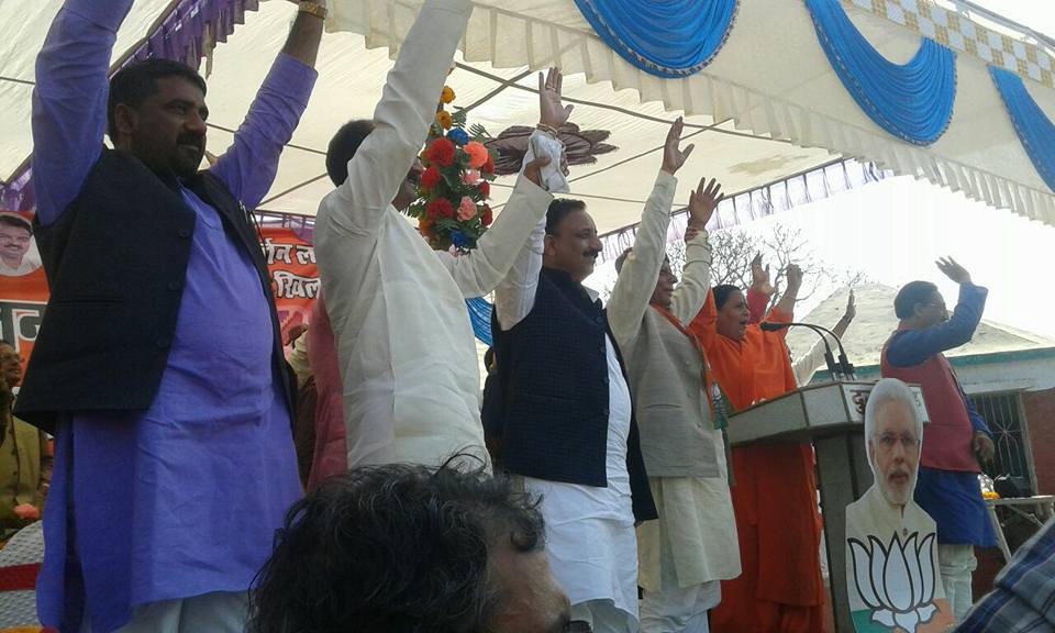कुशीनगर(उ0प्र० ): विधानसभा (331)तमकुहीराज के बेदुपार में केन्द्रीय मंत्री उमाभारती ने भाजपा प्रत्याशी जगदीश मिश्र (बाल्टी बाबा) के पक्ष में जनसभा को संबोधित करते हुए कहा कि सपा गठबंधन और बसपा से उत्तर प्रदेश कि जनता तंग आ चुकी है | क्षेत्र की जनता ने इस बार परिवर्तन करने का निर्णय ले लिया है| जनसभा में उमड़ा जनसैलाब कुछ अलग ही बयां कर रहा था | उत्तराखण्ड के पूर्व मुख्यमंत्री व हरिद्वार के सांसद रमेश पोखरियाल ‘निशंक’, और सहारनपुर के विधायक राजीव गुम्बर ने भी भाजपा के लिए वोट माँगा | अजय तिवारी, संदीप तिवारी व सैकड़ो वरिष्ट भाजपा कार्यकर्ताओ ने जनसभा में उपस्थित जनता का आभार प्रकट किया | गुंडाराज और भ्रष्टाचार मुक्त सरकार बनाने का सबने संकल्प लिया और उत्तर प्रदेश को एक साफ सुथरी भाजपा सरकार देने का वादा किया |