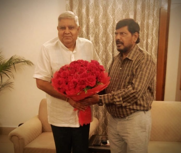 संवाददाता/नई दिल्ली। रिपब्लिकन पार्टी ऑफ इंडिया (आ.) के राष्ट्रीय अध्यक्ष एवं केंद्रीय सामाजिक न्याय व अधिकारिता राज्यमंत्री रामदास आठवले ने नवनिर्वाचित उप-राष्ट्रपति महामहिम जगदीप धनखड़ से नई दिल्ली में शिष्टाचार भेंट की।
